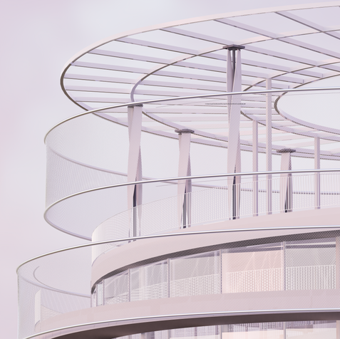 As part of the Building Technologies 3 studio project, we preserved the existing structure at Atarim Square and constructed a new architectural system above it—composed of spiraling ramps, shaded walkways, and a vertical green façade. The original building served as a structural base for a light, modular, and breathable addition that enables continuous movement upward through the levels. Along the ramps, we integrated shading elements, aluminum mesh panels, and a dedicated system for growing vines, supported by refined aluminum profiles, steel connections, and a water-collection and drainage infrastructure. The intervention creates a new urban environment that reconnects the city to the sea, introduces greenery, shade, and places for rest—while maintaining minimal impact on the original structure and celebrating its preservation.